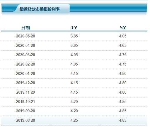 中国人民银行授权全国银行间同业拆借中心公布,2020年6月22日贷款市场报价利率(LPR)为:1年期LPR为3.85%,5年期以上LPR为4.65%。以上LPR在下一次发布LPR之前有效。