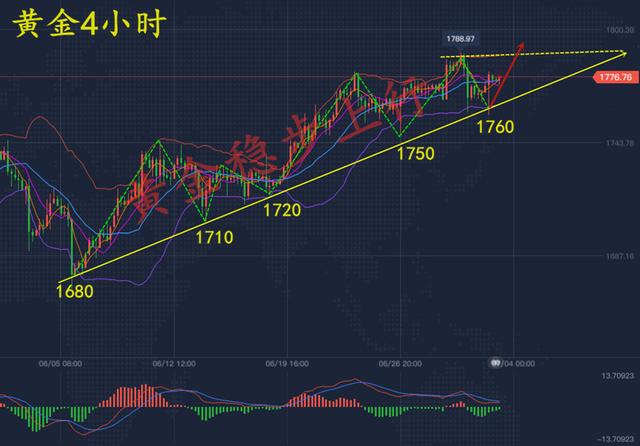 3、从周线(包括月线)形态来看,周线三连阳,中长期强势多头完好。短线昨日探底回升,下方1760/58区域形成了重要的底部支撑,也表明了短线多空只要点位选取得当都可以获利,但是大方向偏多的情况下建议更是以做多为主交易思路。