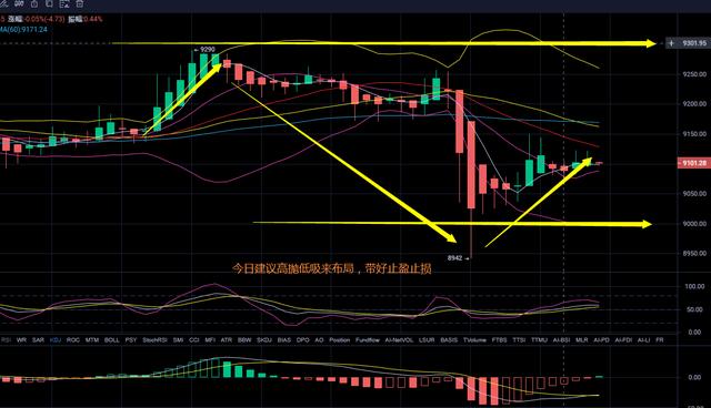 比特币操作策略一:回调至9200-到9250做空,目标9050附近,止损9300