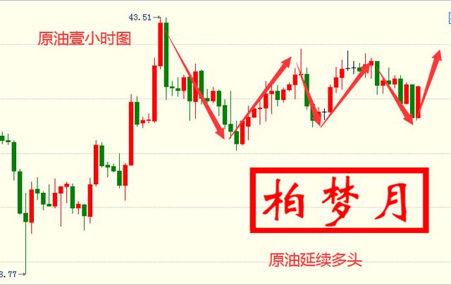 周线图来看,已经连续两周收阳了,原油依然处于震荡上涨的走势,本周原油行情波动不大,一直处于高位震荡,周五收盘还是收盘于42上方。下周原油肯定有突破行情,要么创新高延续多头,要么高位震荡后大幅下跌,下周一黄金延续多头的情况更高些,大周期原油趋势还是多头,我们顺势布局盈利概率将大大提高。