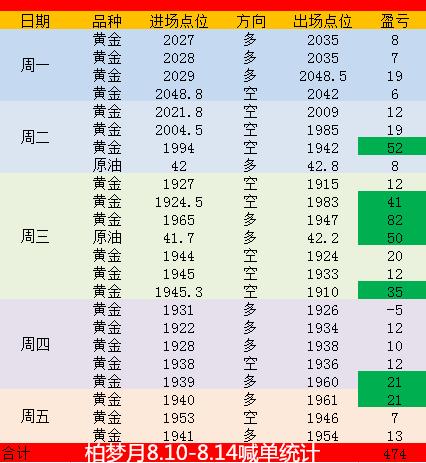 回顾本周,黄金先多后空再多,紧抓趋势节奏,带领实盘把握黄金大利润行情,原油本周更多以观望为主,操作很少。实力派,用实力说话,只看事实不讲故事,本周(8.10-8.14)总共喊23单,大部分单子都是策略先行,随后止盈,实力获利4740利润,实盘翻丶仓,翻丶仓,一个人能走多远,看与谁同行,一个人可以走的很快,但一群人走的很远。梦月团队一直站在行情一线,走在盈利的前沿。想稳健获利,还请紧跟梦月