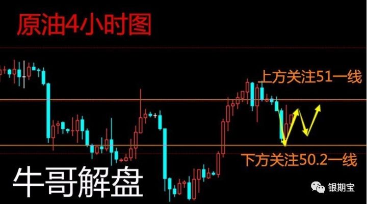 2.回落50.2附近做多,止损0.4,目标看50.8