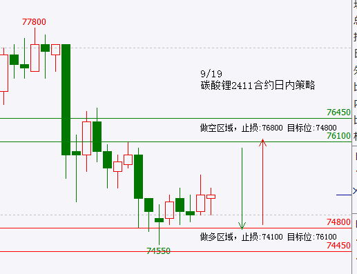 碳酸锂2411合约可能运行区间:74450-76450震荡