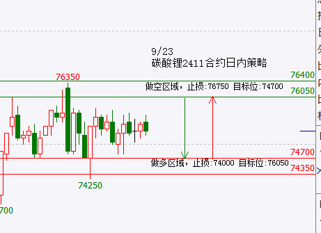 碳酸锂2411合约可能运行区间:74350-76400震荡