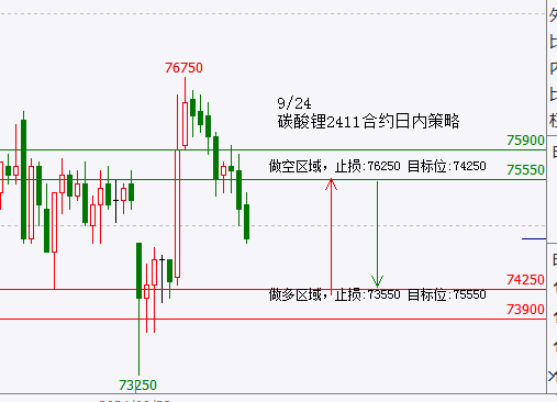 碳酸锂2411合约可能运行区间:73900-75900震荡
