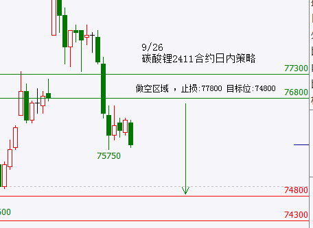 碳酸锂2411合约可能运行区间:74300-77300震荡下行