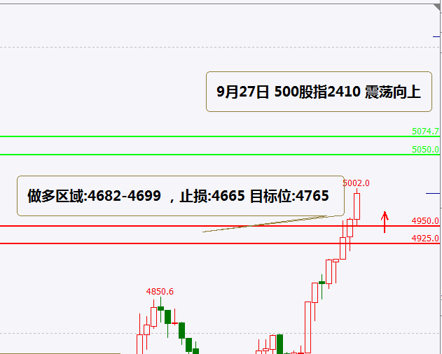 做多区域:4925-4950 ,止损:4900 目标位:5050