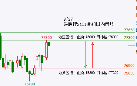 碳酸锂2411合约可能运行区间:75650-77650震荡