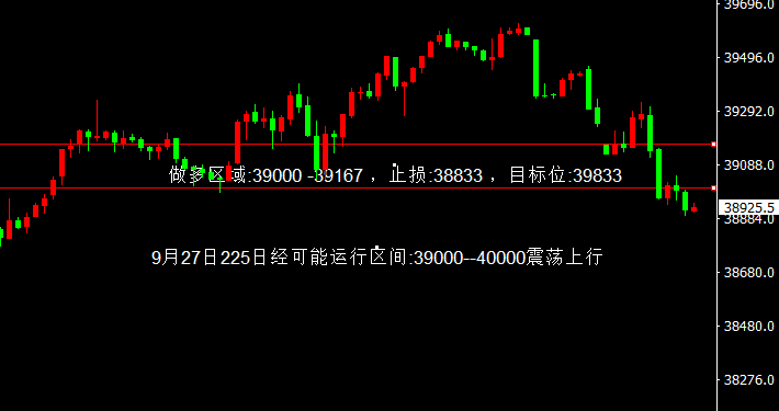 做多区域:39000 -39167 ,止损:38833 ,目标位:39833