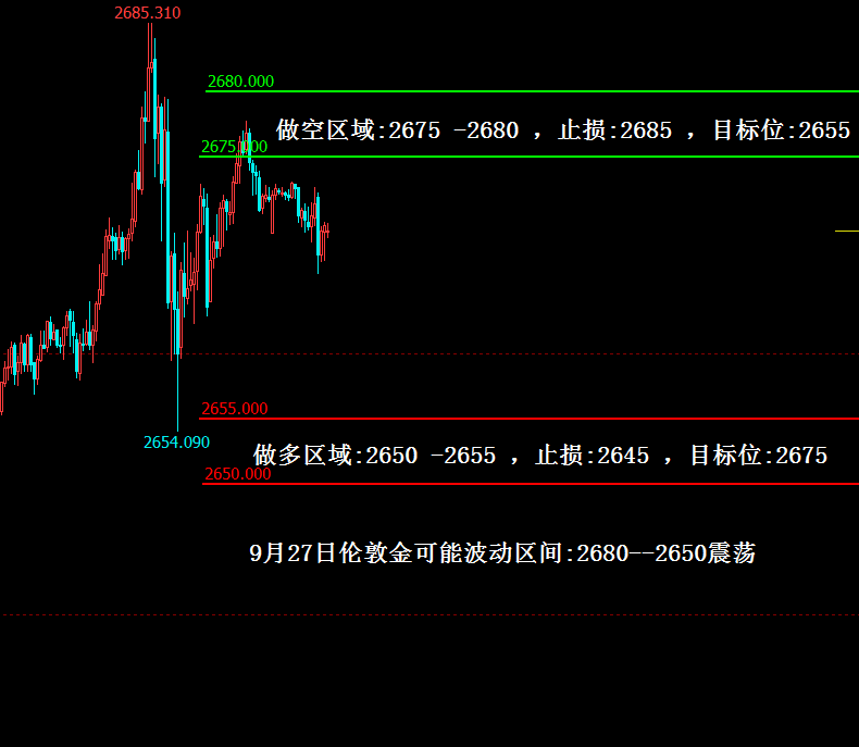 做空区域:2675 -2680 ,止损:2685 ,目标位:2655