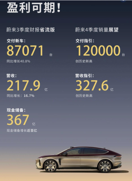 蔚来Q3财报交出超预期答卷,三大核心数据同步创下历史新高,直接为资本市场注入强心剂。作为投资者最关注的指标,这份财报的亮点足以打消短期顾虑。