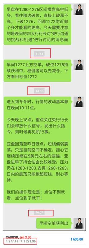 第二单:16:10空单止盈后,多单立马反手进场,这个点位没实时更新到朋友圈,但锦云的实盘客户做到了,在1275位置迅速出单,这种趋势,赚钱就要立马跑,很可惜的是,没有立马追空