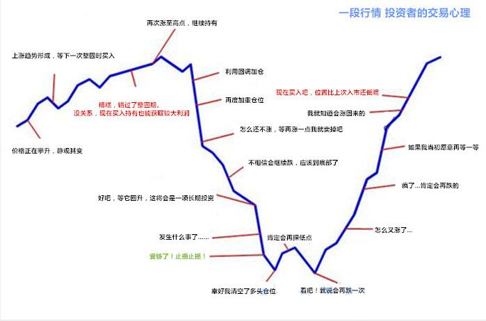 下面的图表就能很好的表达投资者在行情的各个阶段,交易心情是如何的: