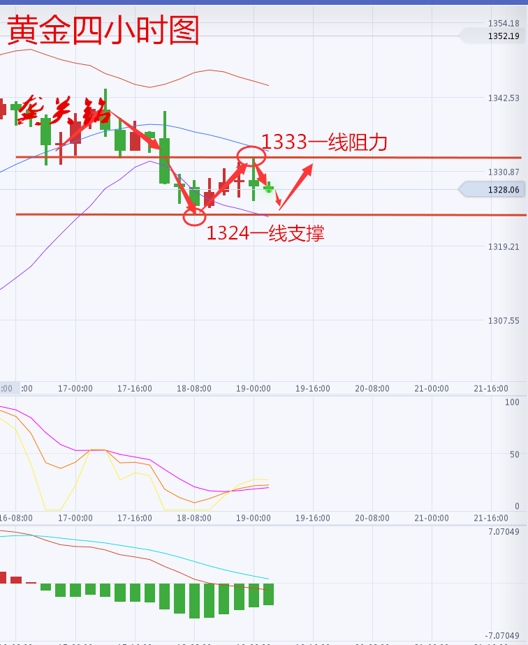 1、1344-1340附近多单的朋友,可以在1323-1325附近主要支撑不破,在仓位允许的情况下,进场多单,拉低均价,在破1340后根据行情的上涨幅度选择减仓点位