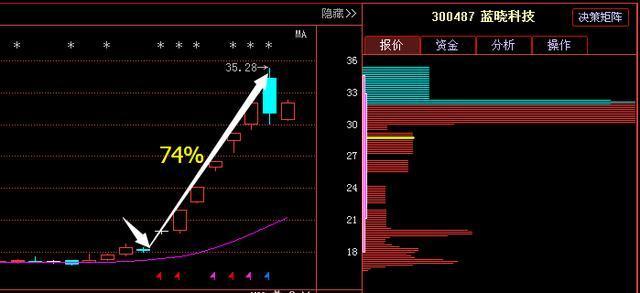同样蓝晓科技也是底部选出,选出之后一路飙涨,到目前为止涨幅也是超过了74%,有幸看了本人当天发文讲解的粉丝朋友,都是抓住了节后的红包行情,木有抓住的粉丝朋友只能说你不上心了,此类短线股也会持续跟踪讲解。