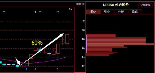 长期看我文章讲解的股友都知道,每次通过选股法选出大涨的股票都是批量的,永吉股份只是实力中的冰山一角,再来看这只,如图: