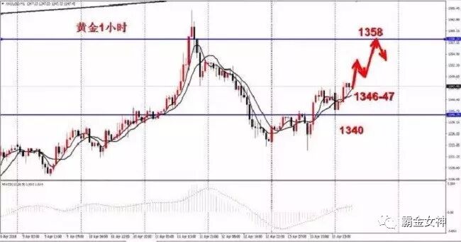 现在,4小时方面价格以5、10均线为支点位置向上上升,日线走的也是比较有力,后面行情的方向仍然有望向上延续上涨,上面将到1354-58的范围之内,以1340为防守的点位,还是要低多黄金。
