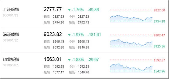 昨日,特朗普政府公布了一份清单,列出了对中国2000亿美元商品征收10%关税的清单。受此消息影响,沪指今日跳空下行,收盘大跌1.76%,再度失守2800点关口,收报2777.77点;深成指大跌1.97%,险守9000点关口,收报9023.82点。两市合计成交3411亿元。