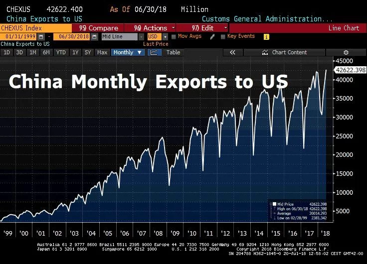 美国总统特朗普周五(7月20日)在接受CNBC采访时表示,他准备好对进口自中国的5000亿美元商品征收关税,当前的美中贸易冲突恐升级。在接受CNBC采访时,他表示:“我准备上调到5000亿(美元)。”这相当于去年一年中国出口到美国全部货物总额。