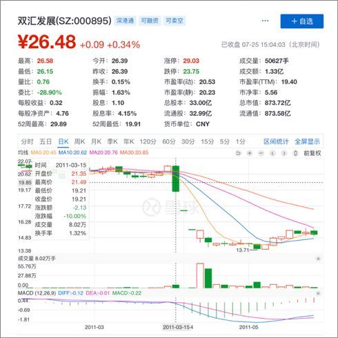 双汇发展是当时最大白马股之一,众多基金重仓,三个月前才刚刚拉了6个涨停,一度气势如虹。