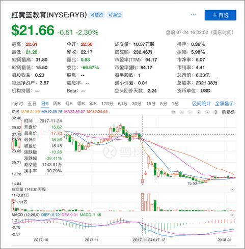 24日晚上,红黄蓝召开电话会议,对事件进行了解释,并紧急抛出5000万美元的回购计划。但是这并无法阻挡股票在开盘后暴跌38%,一度跌破发行价。