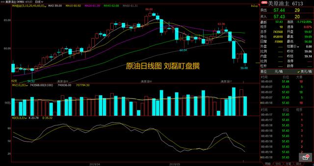3、强势破位57.10一线空单进场,止损0.5美金,目标56.65一线