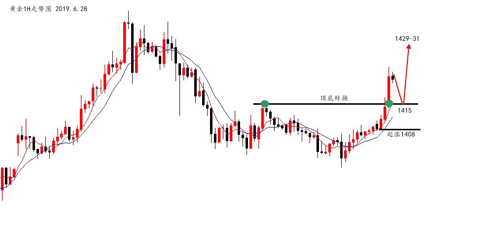 黄金,昨日黄金,价格刺破1400后凌晨反抽。日线T型,多头修正形态,今日早间再次高走向上拉升16美金,多头修正完毕,日内做多为主,上方关注1429-31压制,下方关注顶底转换1415及起涨1408,操作上建议1415多,止损1408,目标1429-31!