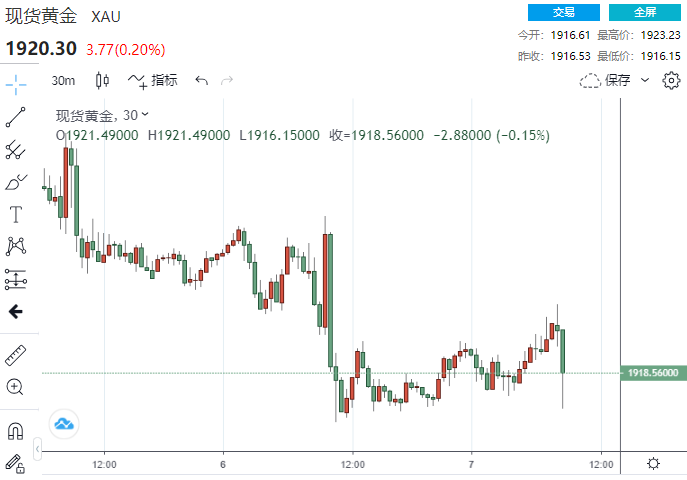 数据发布后,现货黄金短线走低4美元,现报1920.30美元/盎司。