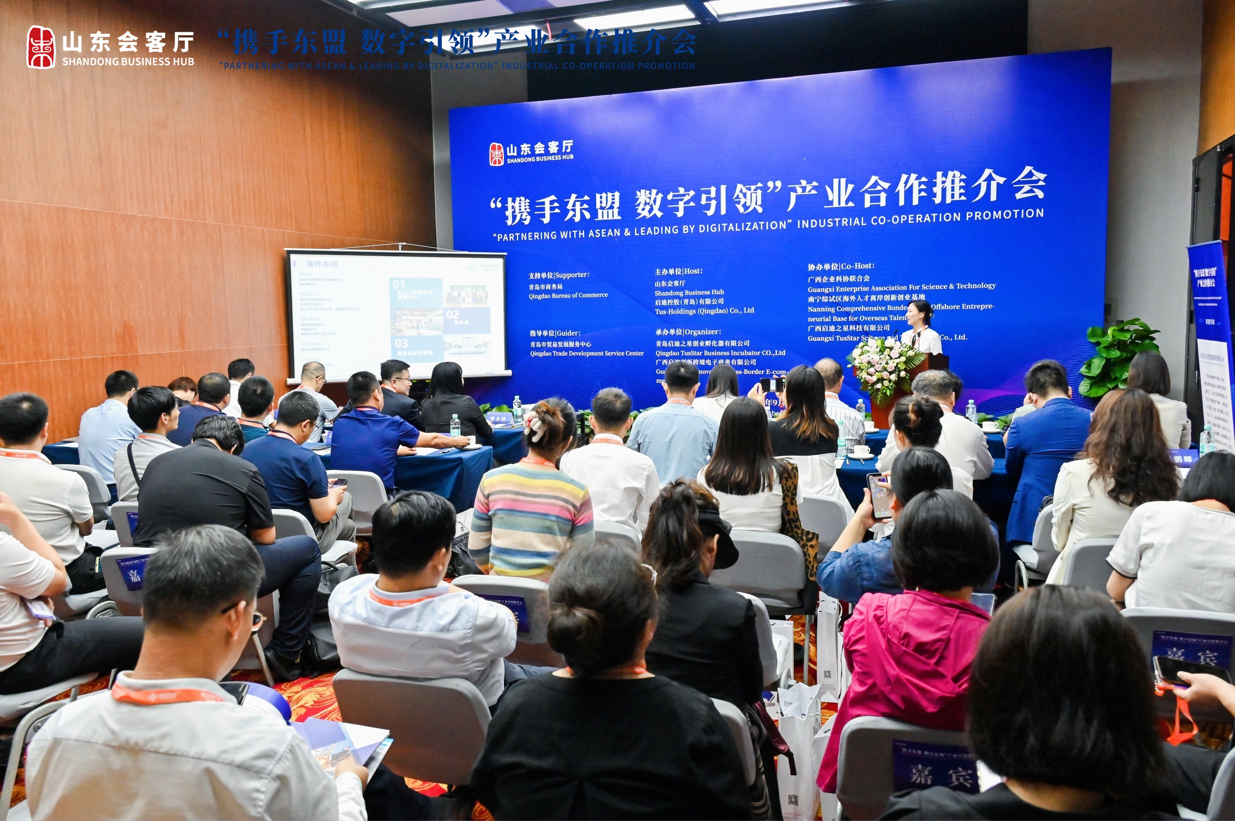 服务山东省开放发展大局,建立东盟合作直通平台,9月16日,在第20届中国—东盟博览会(以下简称东博会)上,山东会客厅举办“携手东盟 数字引领”产业合作推介会,宣传推介山东和青岛数字经济发展的成果,向国内外嘉宾介绍山东企业,加强与东盟国家数字经济产业的交流与对接。