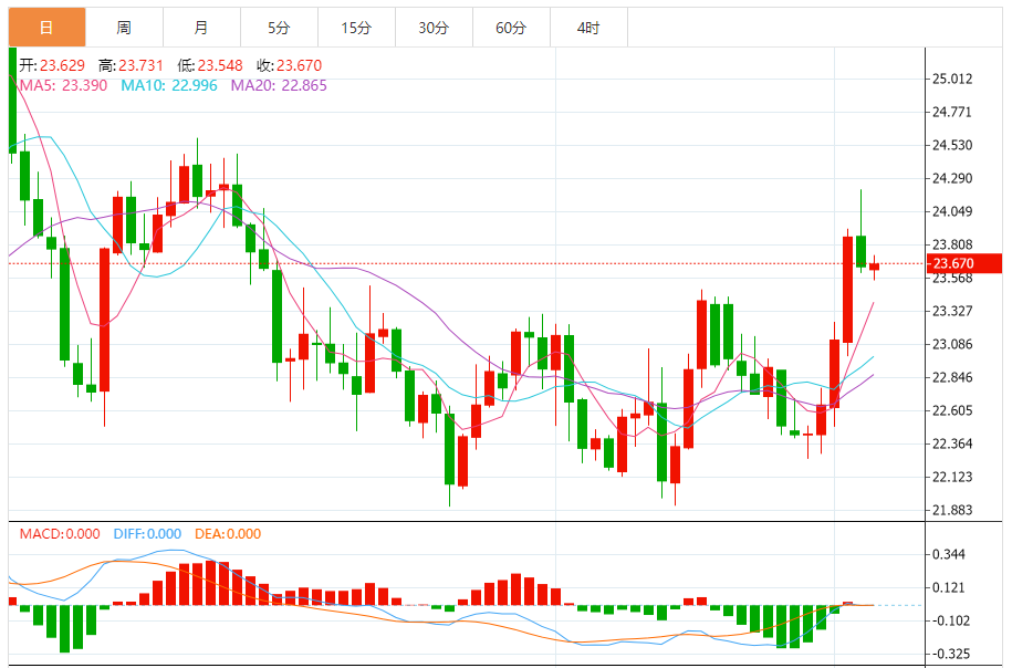 今天的预期交易范围:在23.10支撑和23.90阻力之间。