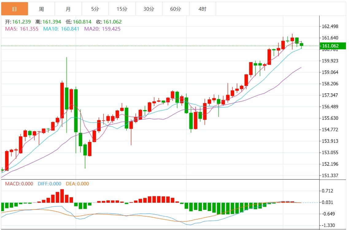 考虑到这两点,可以肯定的是,阻力最小的路径。反转可能会在20日移动均线附近找到支撑,该均线现在更接近市场158.52。在此之前是通道支撑位159.11。(亚汇网编辑:小七)