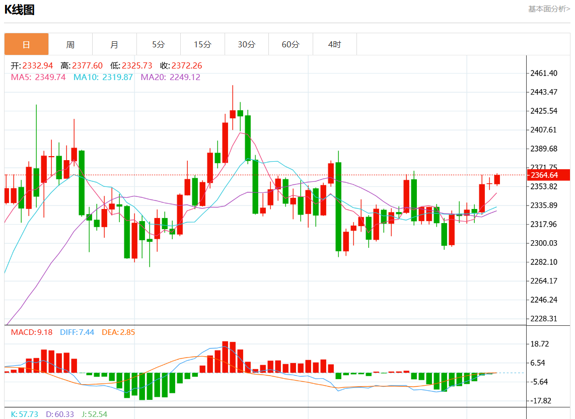 周五欧市盘中,现货黄金报2366.87,跌幅0.43%。