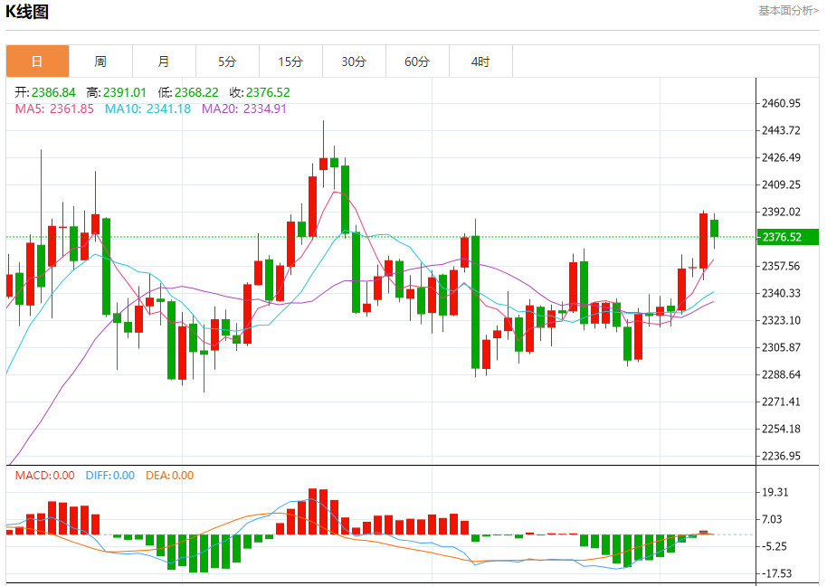 周一盘中,现货黄金报2374.85,跌幅0.67%。