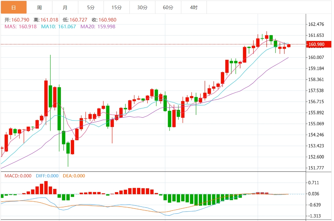 预期交易范围在160.00支撑位和161.60阻力位之间。
