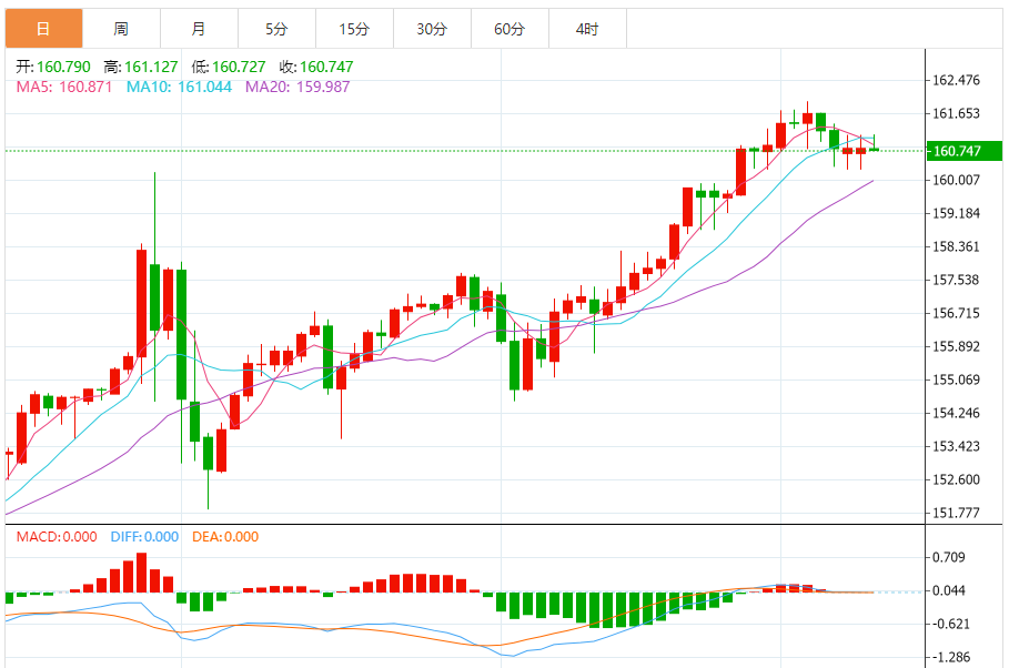 周二(7月9日),美元/日元下跌160.758,暂报160.748,跌幅0.03%。