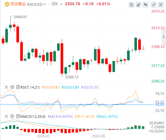 黄金价格在2358.09美元,直接阻力位在2368.81美元,支撑位在2355.14美元。对美联储降息的猜测(目前降息的可能性为73%)影响了市场情绪,可能会影响价格。保持在2355.14美元上方表明存在上升趋势,而跌破可能会加强看跌势头。