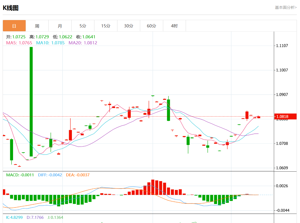 周三欧市盘中,欧元/美元最新报1.0823,日图涨0.09%。