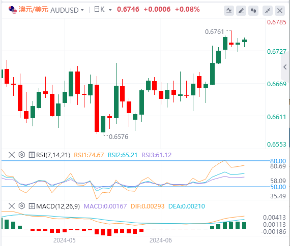 澳元/美元需要强势突破0.6750,才能在近期进一步看涨向0.68。否则,这个货币对可能会回落向0.6650。需要观察未来几个交易时段的价格走势,看看当前的上涨是否会持续。