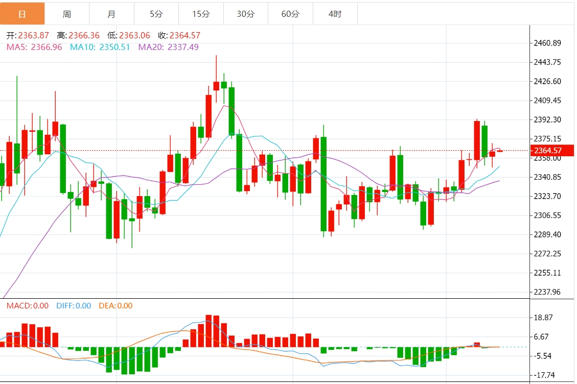 今天的预期交易区间在 2350.00 美元支撑位和 2390.00 美元阻力位之间。