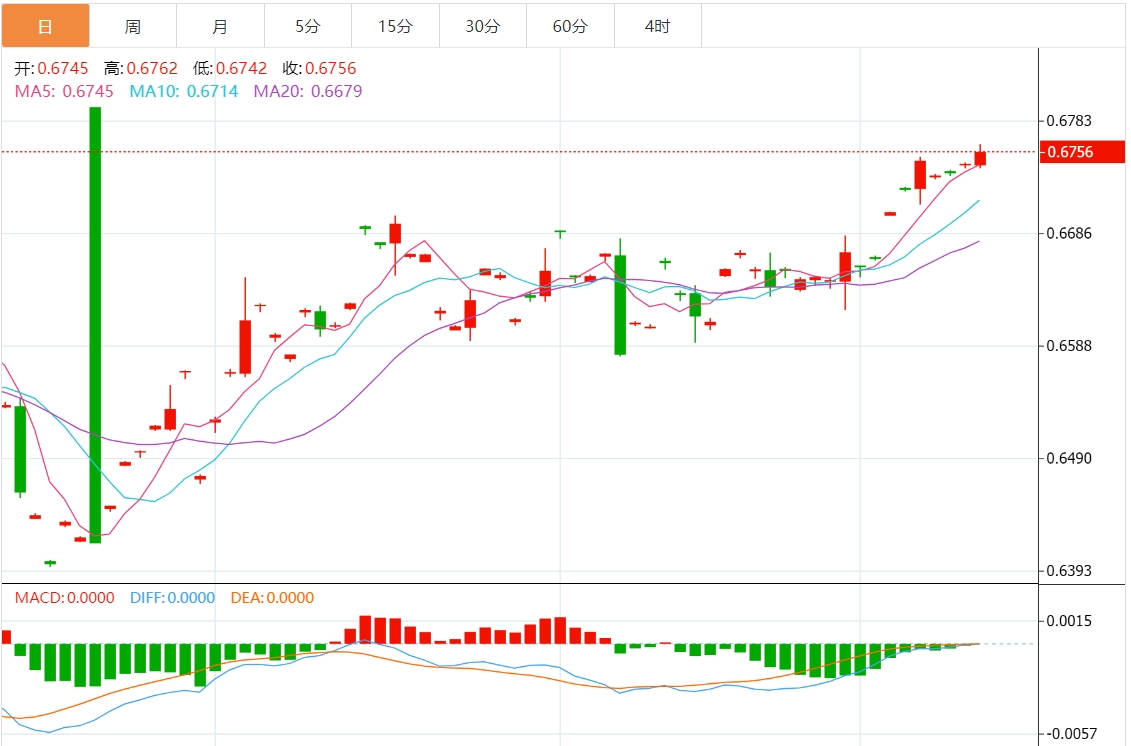 今天的预期交易区间在 0.6720 美元支撑位和 0.6820 美元阻力位之间