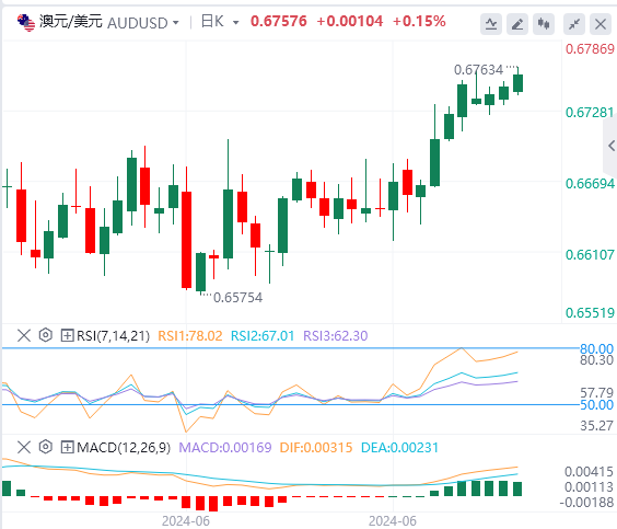 由于美元疲软,澳元/美元走高,美国CPI将于今天发布。澳元/美元可能会涨向0.68/0.6850。