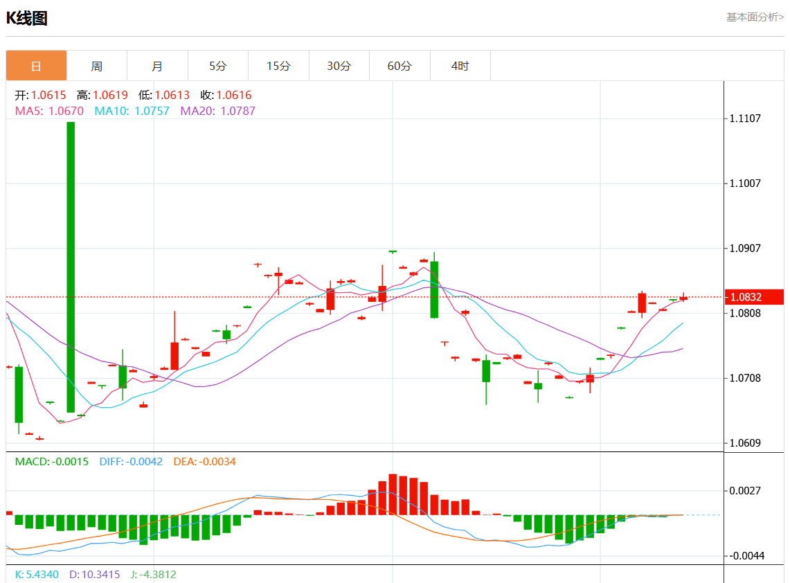 周四欧市盘中,欧元/美元最新报1.0834,日图涨0.06%。