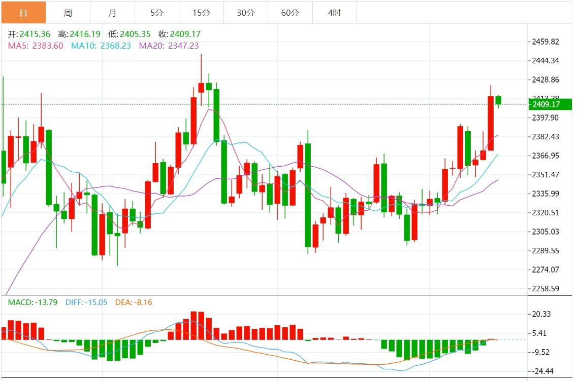 金价在区间内反弹,接近5月20日的历史高点2,450美元。黄金现在可能不像以前那样形成顶部形态,而是处于横盘整理状态——在更广泛的上升趋势中暂停。