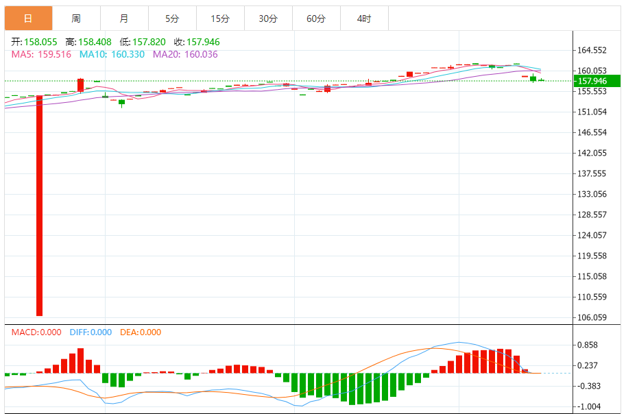 周一(7月15日),美元/日元上涨157.996,暂报157.966,涨幅0.05%。