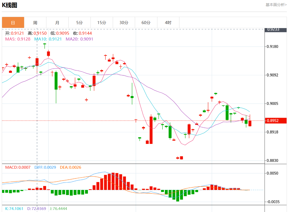 今日分析:在0.8945之上,看涨,目标价位为0.8970,然后为0.8985。
