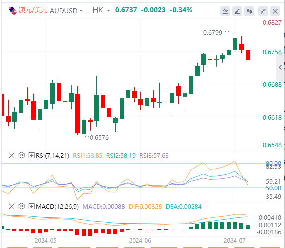 今天的预期交易区间在0.6710美元支撑位和0.6800美元阻力位之间