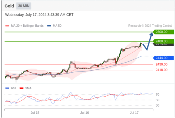 在 2444.00 之上,看涨,目标价位为 2480.00 ,然后为 2500.00 。