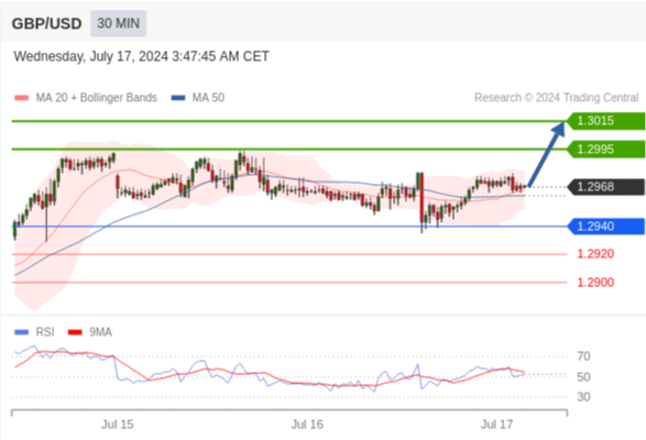 在 1.2940 之上,看涨,目标价位为 1.2995 ,然后为 1.3015 。