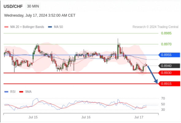 在 0.8955 之下,看跌,目标价位为 0.8930 ,然后为 0.8915 。