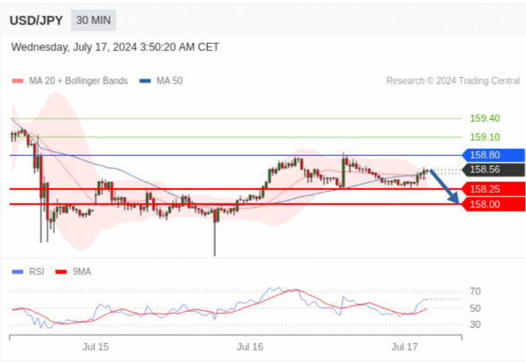 在 158.80 之下,看跌,目标价位为 158.25 ,然后为 158.00 。